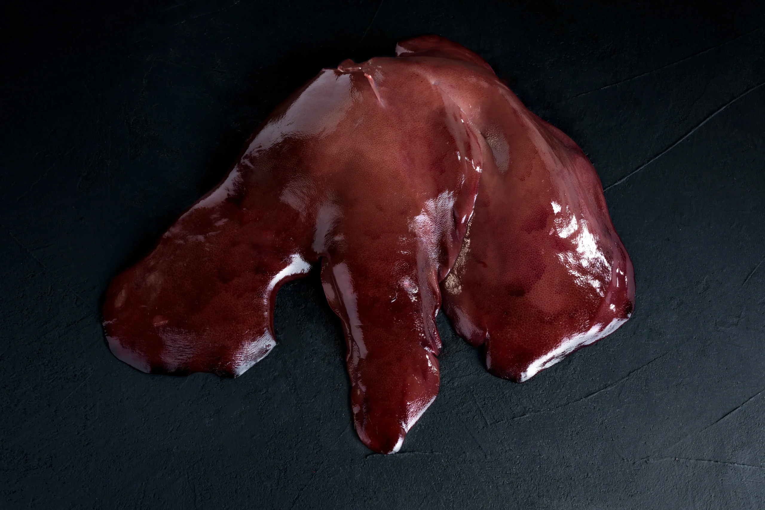 Ένα μεγάλο όργανο με χαρακτηριστική δομή λοβών και έντονο κοκκινωπό-καφέ χρώμα. Είναι εξαιρετικά πλούσιο σε βιταμίνη Α και σίδηρο. Διαθέτει πιο έντονη και γήινη γεύση σε σχέση με άλλα συκώτια και κοκκώδη υφή. Παραδίδεται καθαρισμένο από τη χολή και τα μεγάλα αγγεία.